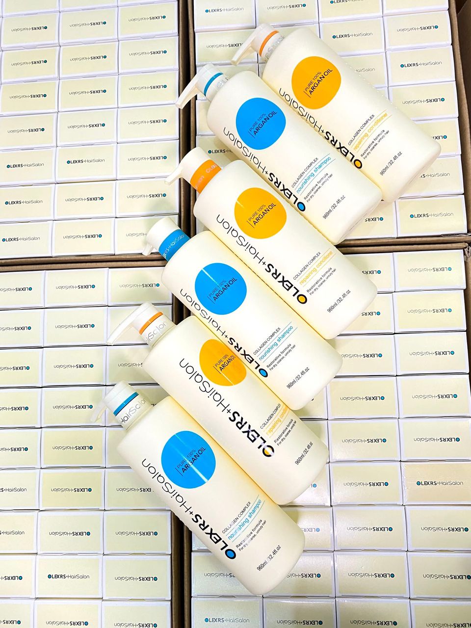 Each pallet features between 200 to 250 sealed bottles of OLEXRS shampoo, carefully selected across several high-demand formulas to address a wide range of haircare needs.